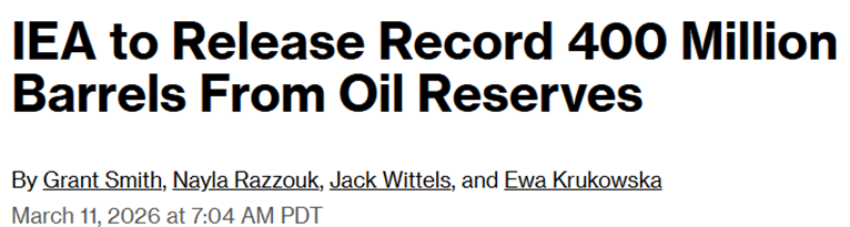 In the days ahead, markets are likely to stay focused on three key variables: the reliability of commercial transit through the Strait of Hormuz, the pace at which Gulf producers restore output and refining capacity, and the willingness of policymakers to use tools such as strategic reserve releases or sanctions adjustments to help stabilize supply. On that front, the International Energy Agency (IEA) has already agreed to release 400 million barrels from reserves to contain further price spikes, marking its largest-ever release.