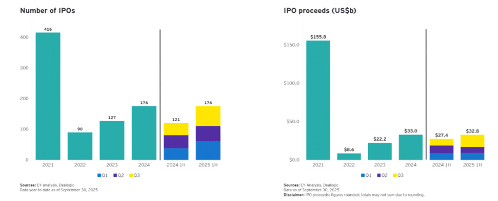 This resurgence has renewed investor optimism that the IPO market may be entering a sustained recovery after falling sharply from its 2021 peak. Improved deal execution, stronger aftermarket performance, and greater valuation discipline have contributed to a more constructive environment for issuers and investors alike.