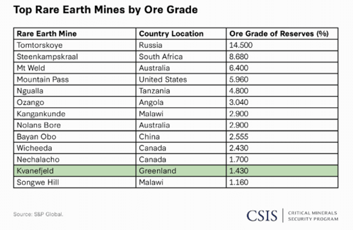 This dynamic has brought rare earths back into the public spotlight. Recent coverage of President Trump’s interest in Greenland highlighted the territory’s strategic mineral potential. Greenland ranks eighth globally in rare earth reserves and is home to two of the world’s largest known deposits: Kvanefjeld and Tanbreez. To date, however, these deposits remain largely unmined due to the harsh Arctic climate, infrastructure limitations, and environmental concerns.